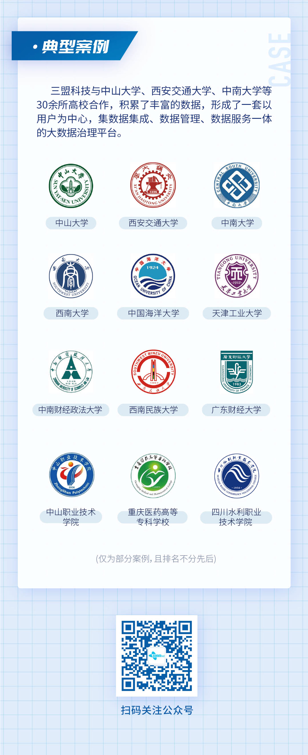 三盟科技股份有限公司(簡稱三盟科技)是一家專注AI+大數據技術,專注教育,將AI+大數據技術與教育行業應用場景深度融合,自主創新研發,為教育數字化提供整體解決方案的軟件技術服務商。