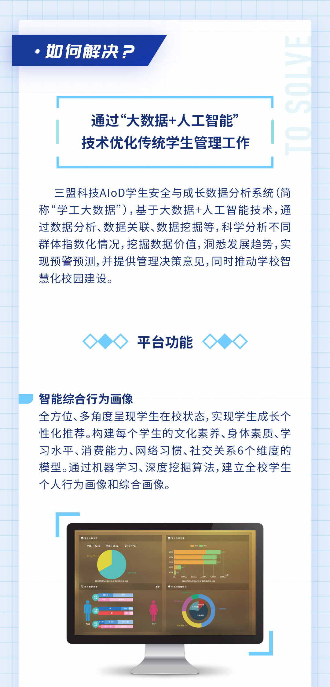 三盟科技股份有限公司(簡稱三盟科技)是一家專注AI+大數據技術,專注教育,將AI+大數據技術與教育行業應用場景深度融合,自主創新研發,為教育數字化提供整體解決方案的軟件技術服務商。