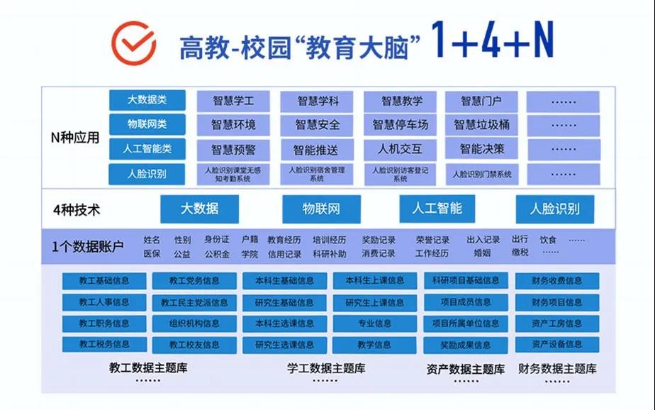 三盟科技深耕教育行業7載,率先運用大數據、人工智能、物聯網、人臉識別等新一代信息技術,推出校園“教育大腦”EDU BRAIN戰略作為校園核心決策中心,圍繞“1+4+N”(1個數字賬戶+4種核心技術+N種應用場景)打造智慧校園整體解決方案。