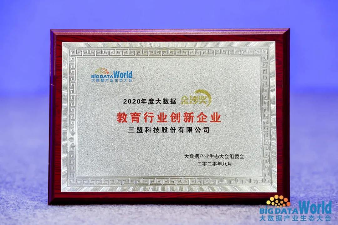 大會對在大數據領域具有杰出表現的企業和解決方案進行表彰,三盟科技表現亮眼,榮獲“2020中國大數據金沙獎·教育行業創新企業”。同時,憑借豐富的應用案例及對行業的技術貢獻,入選《中國大數據產業發展白皮書(2020)》(以下簡稱《白皮書》)。
