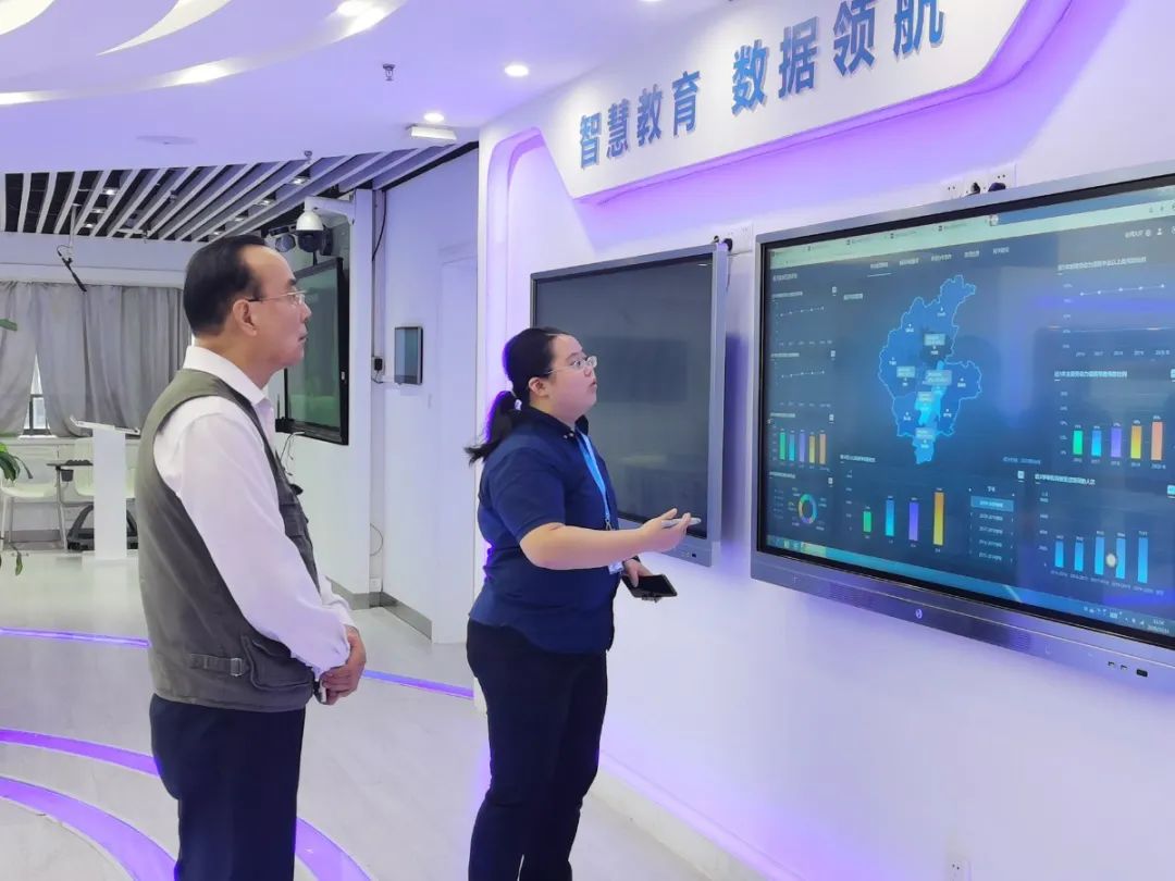 三盟科技運營副總裁焦洋陪同參觀,并向考察團就公司發展、團隊情況、技術實力、應用案例等方面作詳細介紹。副秘書長郝毅一行認真聽取匯報,并對三盟科技在教育領域取得的成果表示認可。