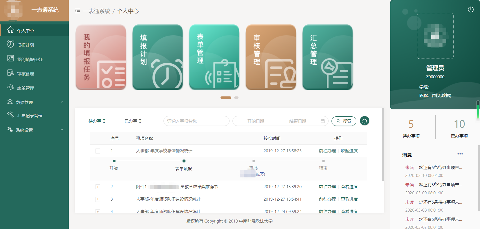 目前,“一表通”系統(tǒng)建設(shè)已成為眾多高校為教師“減負”的重要信息化手段。而走在教育信息化前端的中南財經(jīng)政法大學(xué),已率先完成數(shù)據(jù)智能“一表通”系統(tǒng)的建設(shè)。