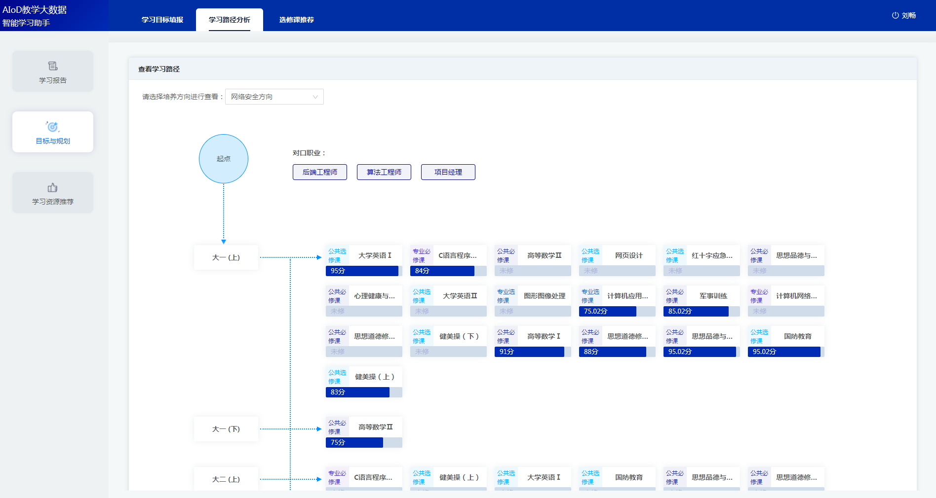 同時結合學生的學習特點,匹配學生職業規劃及所學課程信息,針對性推送學習內容、推薦學習路徑,提升學生學習質量,助力學生成長成才。