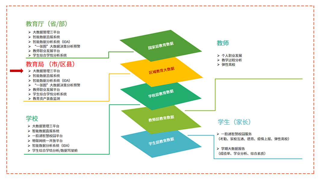 普教“教育大腦”則為中小學提供了智慧教育整體解決方案,通過打造教育數據中臺,幫助區域構建常態化數據采集、治理與標準開放體系,實現省、市、區縣、校四級數據橫向聯動、縱向互通。