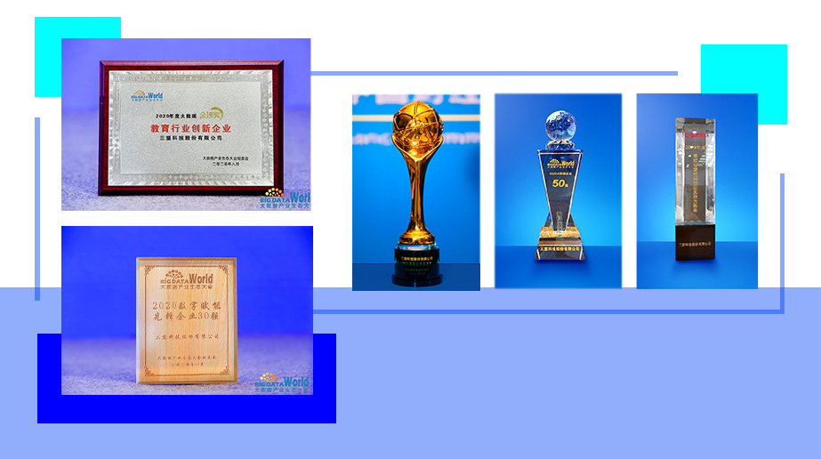 8年來,三盟科技勇于迎擊市場風浪,步履不停,戰勝無數挑戰,累計取得100+項榮譽,成果斐然,享譽業內。截至目前,三盟科技連續4年獲得“教育大數據領軍企業”、“中國大數據企業50強”“大數據企業投資價值百強”以及“2019中國AI+教育年度領軍企業”、“2019中國物聯網+教育行業創新企業”等榮譽稱號,并通過CMMI5全球軟件領域權威認證,成為了國家智慧校園總體架構標準委員會執委及標準實踐單位、人工智能和大數據百人專家委員。