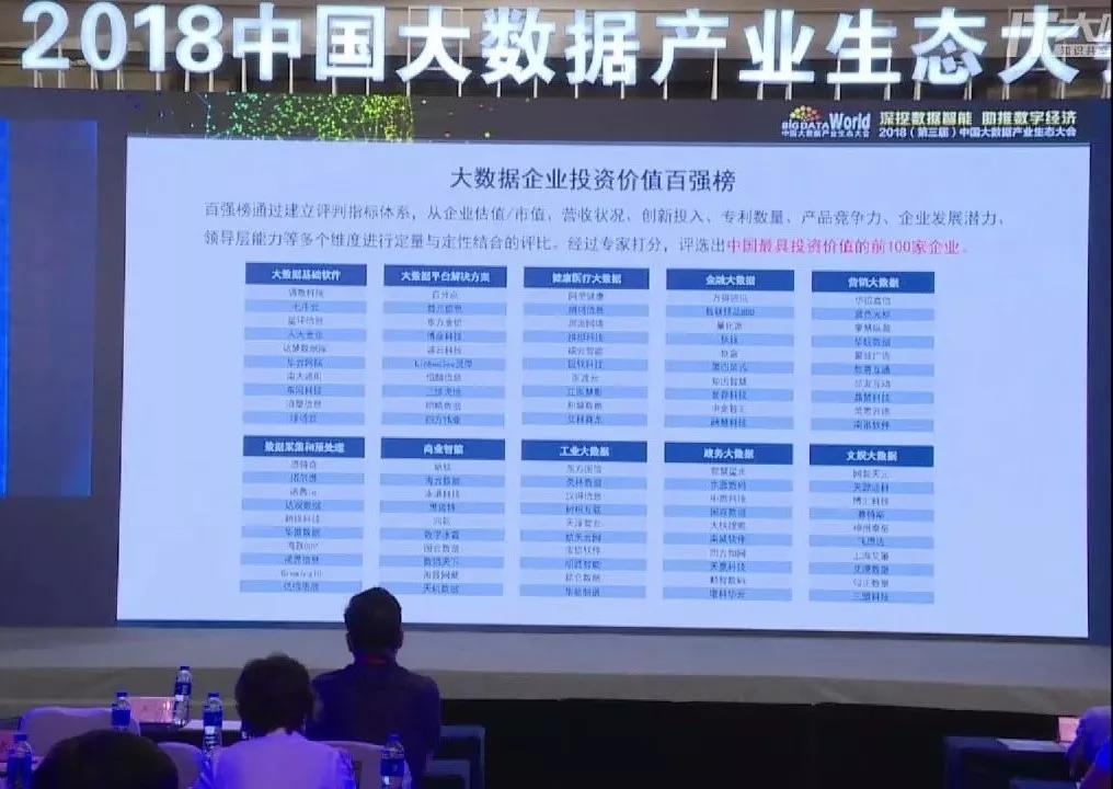2018中國最具投資價值大數據企業TOP100榜單揭曉