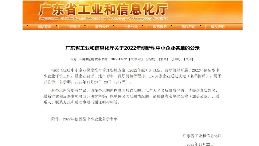 喜報!三盟科技榮登廣東省“2022年創新型中小企業”名單