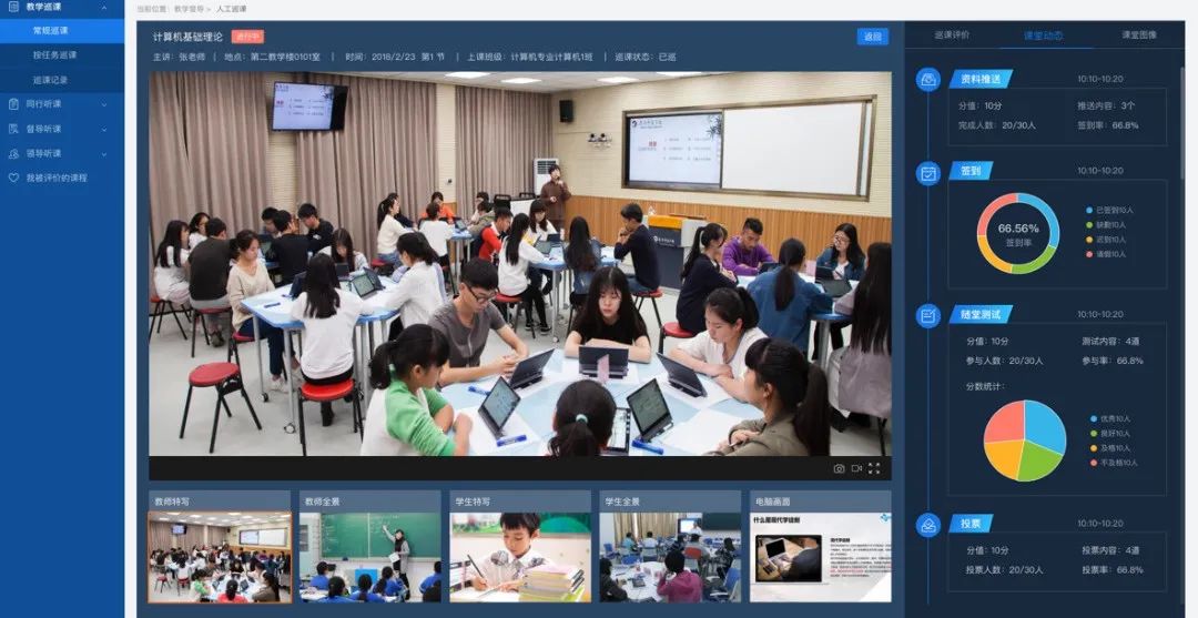 此外,平臺還擁有超越錄播硬件的強大功能,做到將課堂動態與教學互動平臺數據充分融合,同時支持接入第三方平臺教學數據,為督導評價提供全面的數據支撐。通過精準的數據分析和反饋,為高校的教學發展提供重要的參考依據,助推教學質量持續提升。