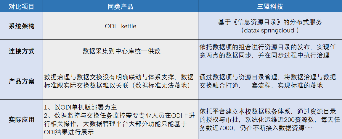 原有ODI體系系統存在一定的性能瓶頸問題,三盟通過先進的分布式數據采集同步技術,在技術底層上完成交換傳輸性能的橫向擴展,并且將共享流程融入到整個數據共享管理過程中,實現數據高效共享。