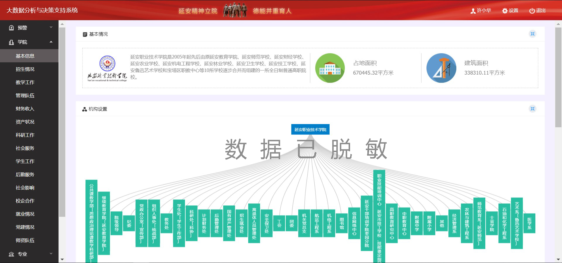 大數據分析與決策系統集合數據采集、數據治理、數據倉庫、分析算法、運維管理等9大功能模塊,對學校各類數據進行綜合分析,消除信息孤島、實現數據共享。