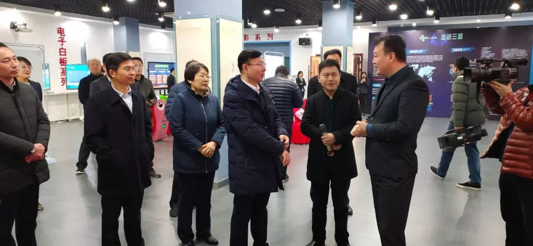 泰安市市長張濤,副市長趙德健在泰山區委副書記、區政府區長王愛新的陪同下參觀考察了三盟科技展區,三盟科技助理CEO孫國文對普教產品做了詳細匯報,泰安市領導對三盟科技進入山東省市場表示熱烈歡迎和高度期待。
