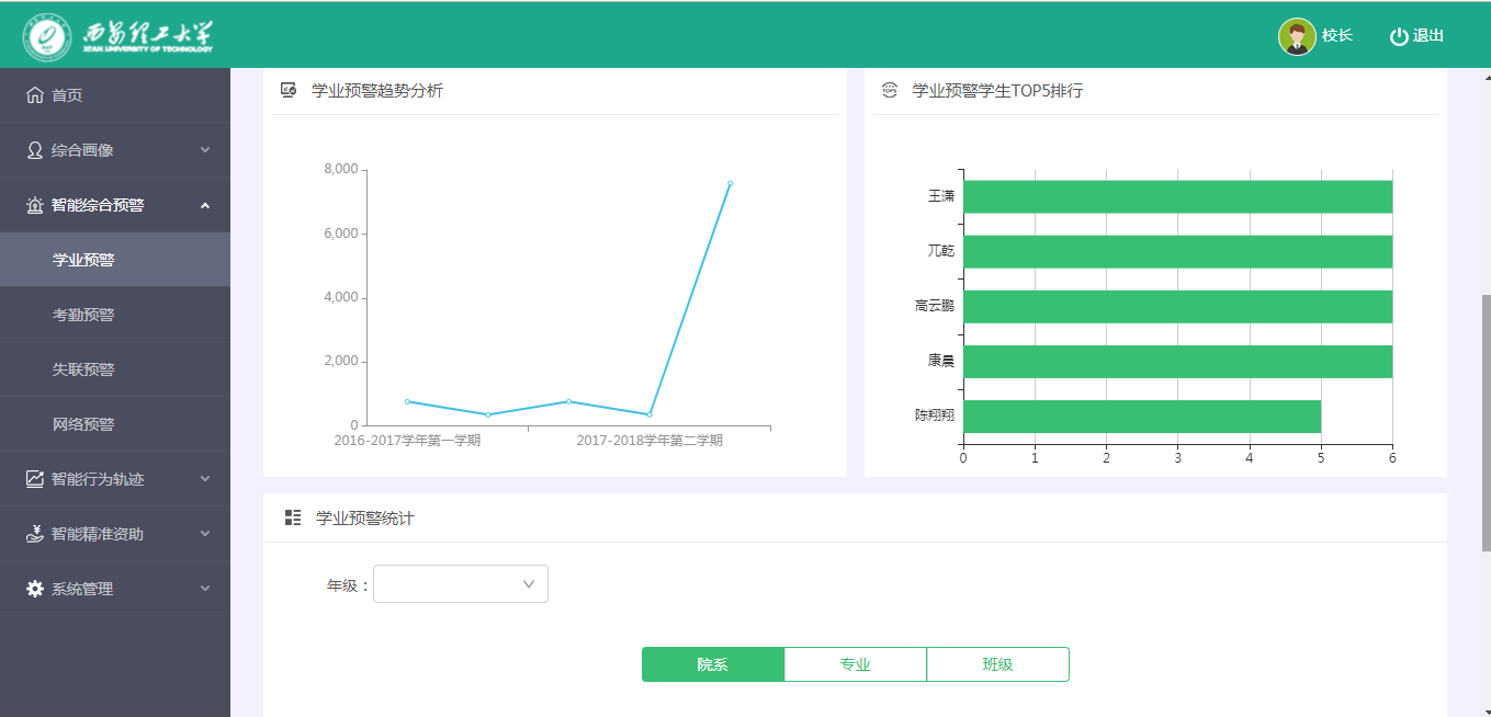 三盟科技學工大數據分析系統有綜合畫像、綜合預警、行為軌跡、精準就業分析、系統管理、思政分析、心理健康分析、精準資助認定八個主要功能模塊。這些功能模塊包括但不限于學工、心理、團委、宿管、離校、就業及其它功能,是學生管理工作的有效輔助工具,對建立良好學風、維護穩定校園秩序、提升管理服務水平都有著重要作用。